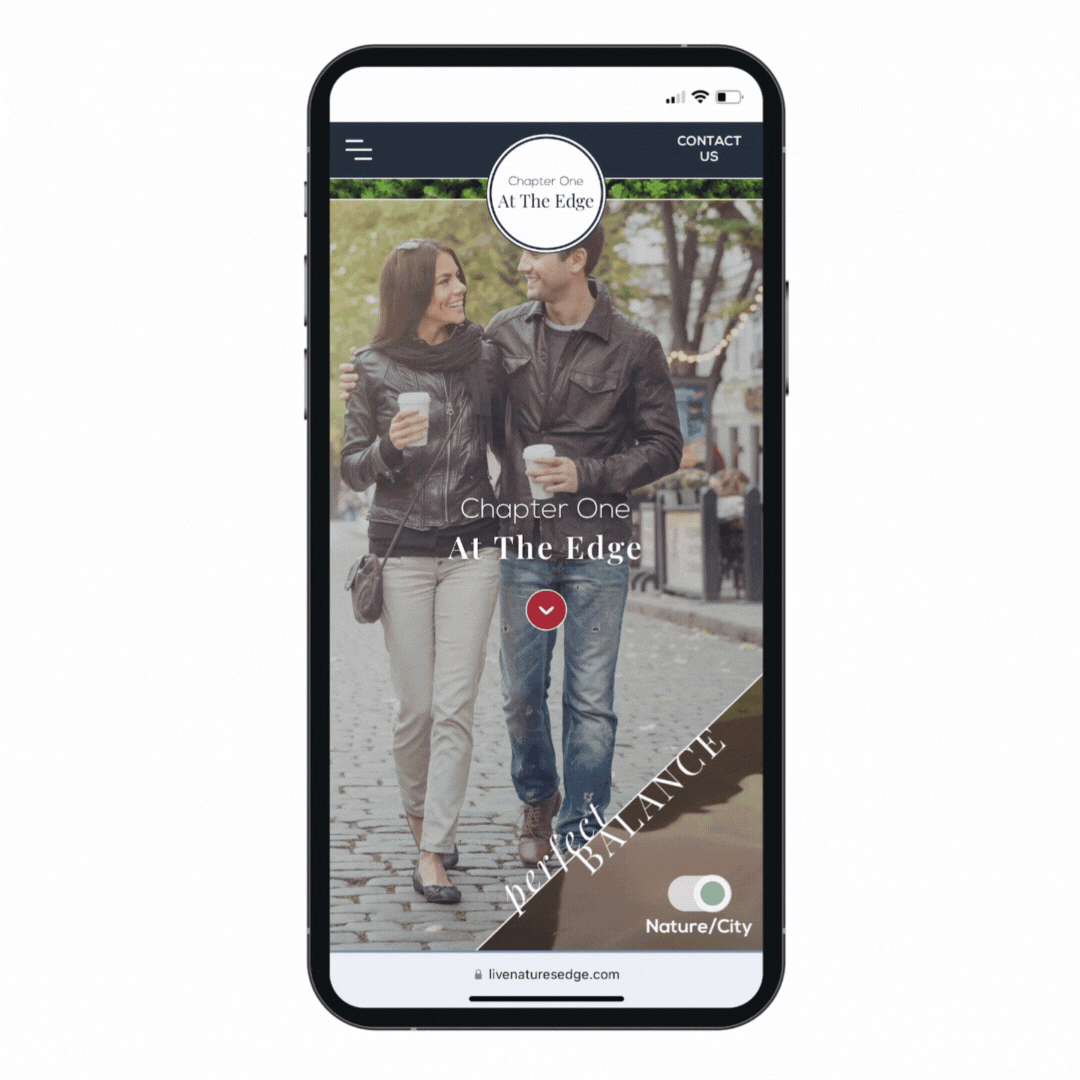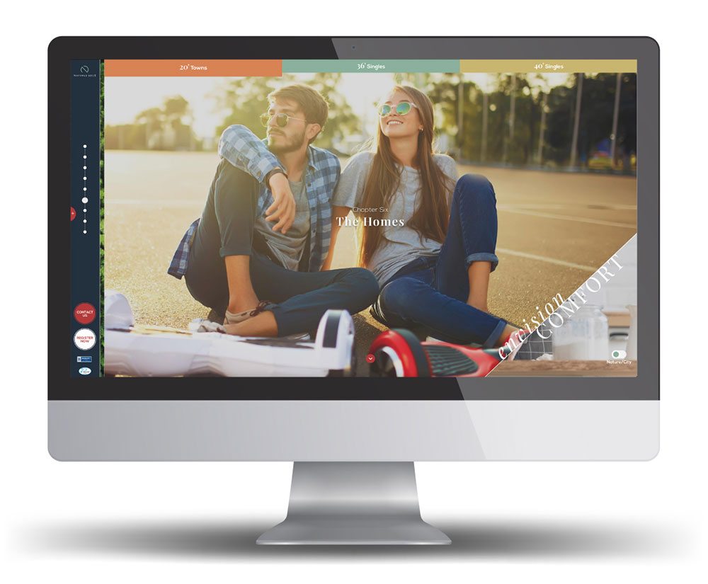 There are many incredible aesthetic and UX elements juxtaposing the story of Nature and City throughout the Digital Brochure. For example, every header has an image toggle where users can choose to see either a city-based or nature-inspired image, the same interactions can be made on neighborhood maps and more. And while fun to navigate, each item is there to encourage more time spent on this website. Strategically, each unique user-click of the mouse is tracked and heat mapped to see what our audience is engaging with and what information is important to our buyers—information that guides sales, eblasts, blogs, advertising and more.