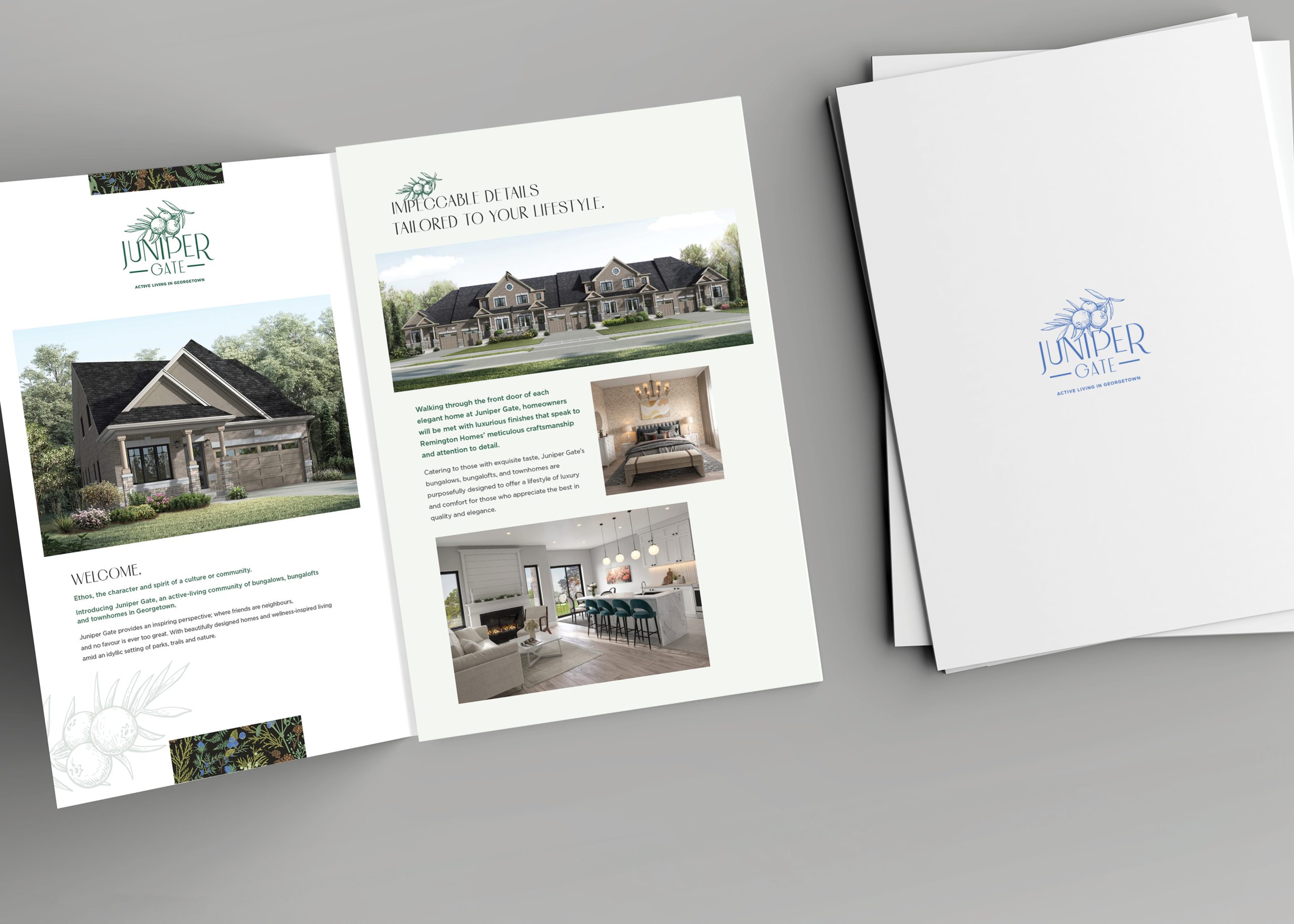 Juniper Gate is a thoughtfully designed active-living community where modern bungalow designs meet scenic trails and green space. Inspired by wellness and built for connection, it offers a low-maintenance lifestyle for those ready to thrive in the next chapter.