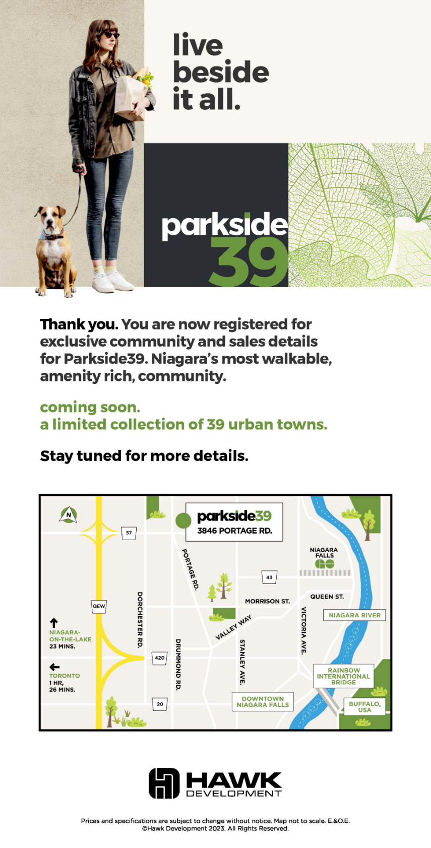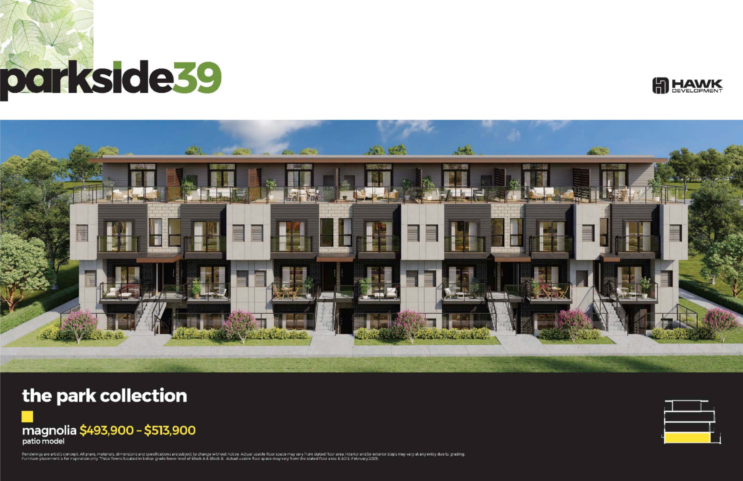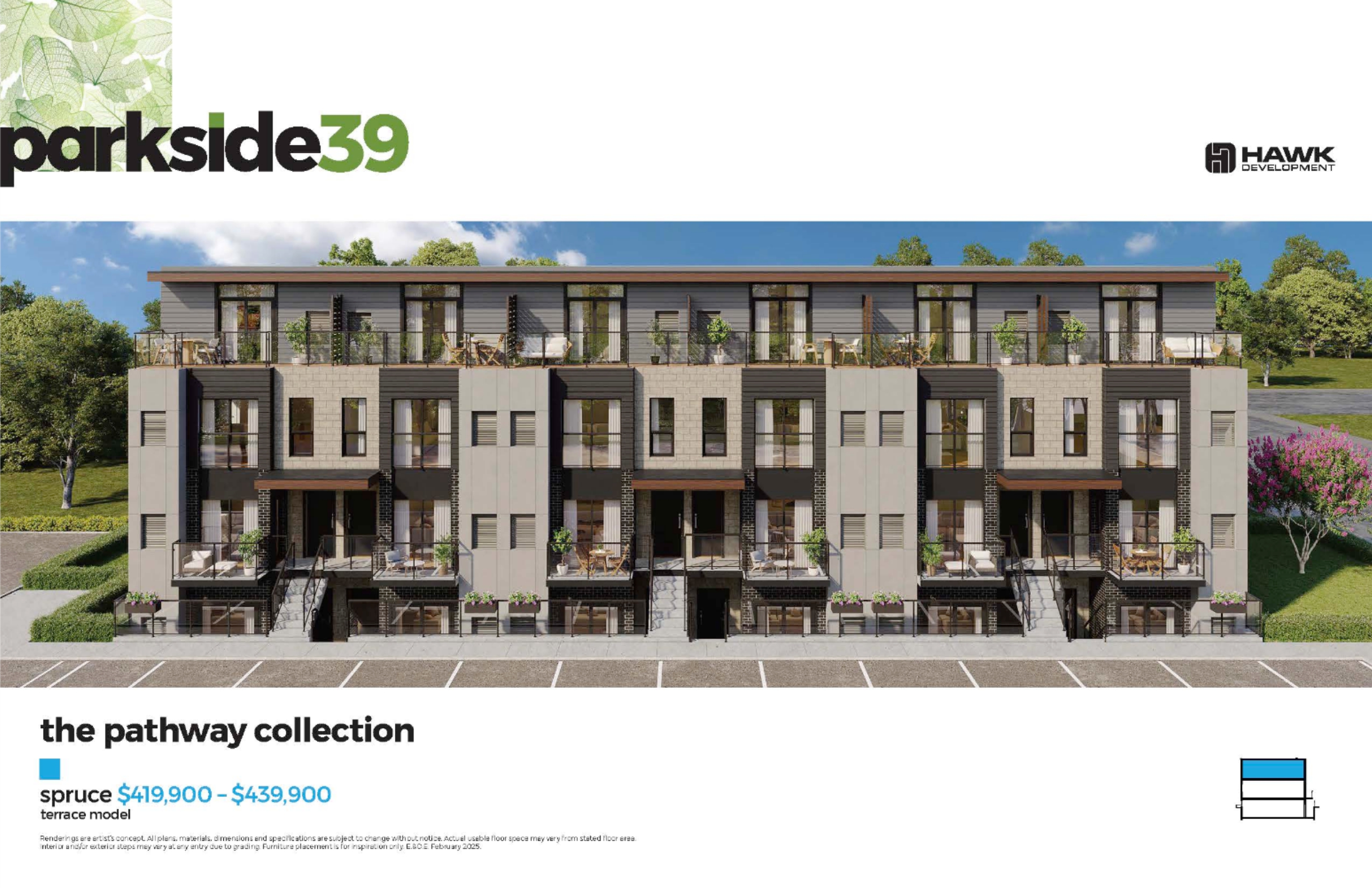 Parkside39 redefines what it means to live in the city. A boutique collection of 39 modern towns in Niagara Falls, it offers the best of both worlds: serene park views and vibrant local energy - all just steps from shopping, cafes, and community.